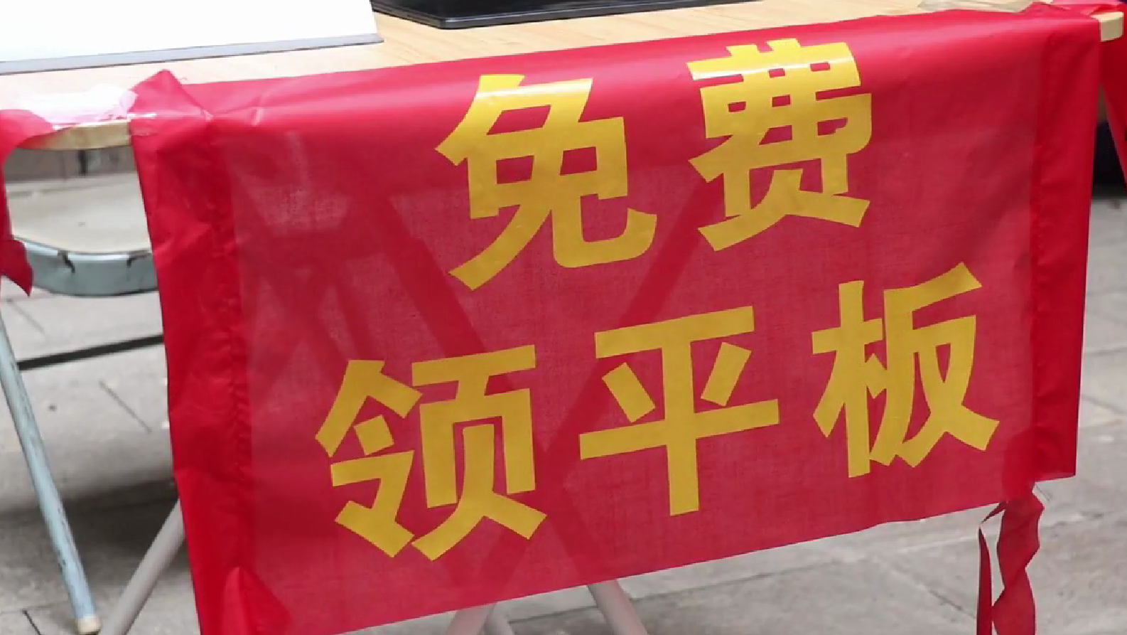 线下销售人员往往在人群聚集的位置开设临时摊位,使用免费赠送平板电脑、学习机等营销话术吸引消费者,并引导消费者使用手机扫码下载某些学习教育APP,即赠送平板电脑、学习机等电子设备。
